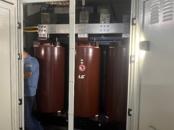 Hình ảnh 02 máy biến áp khô LS 2000kvA đã sửa chữa xong và đóng điện và chạy thử hoạt động tốt trong 72 h, đảm bảo đưa vào đóng điện lại cho dự án.